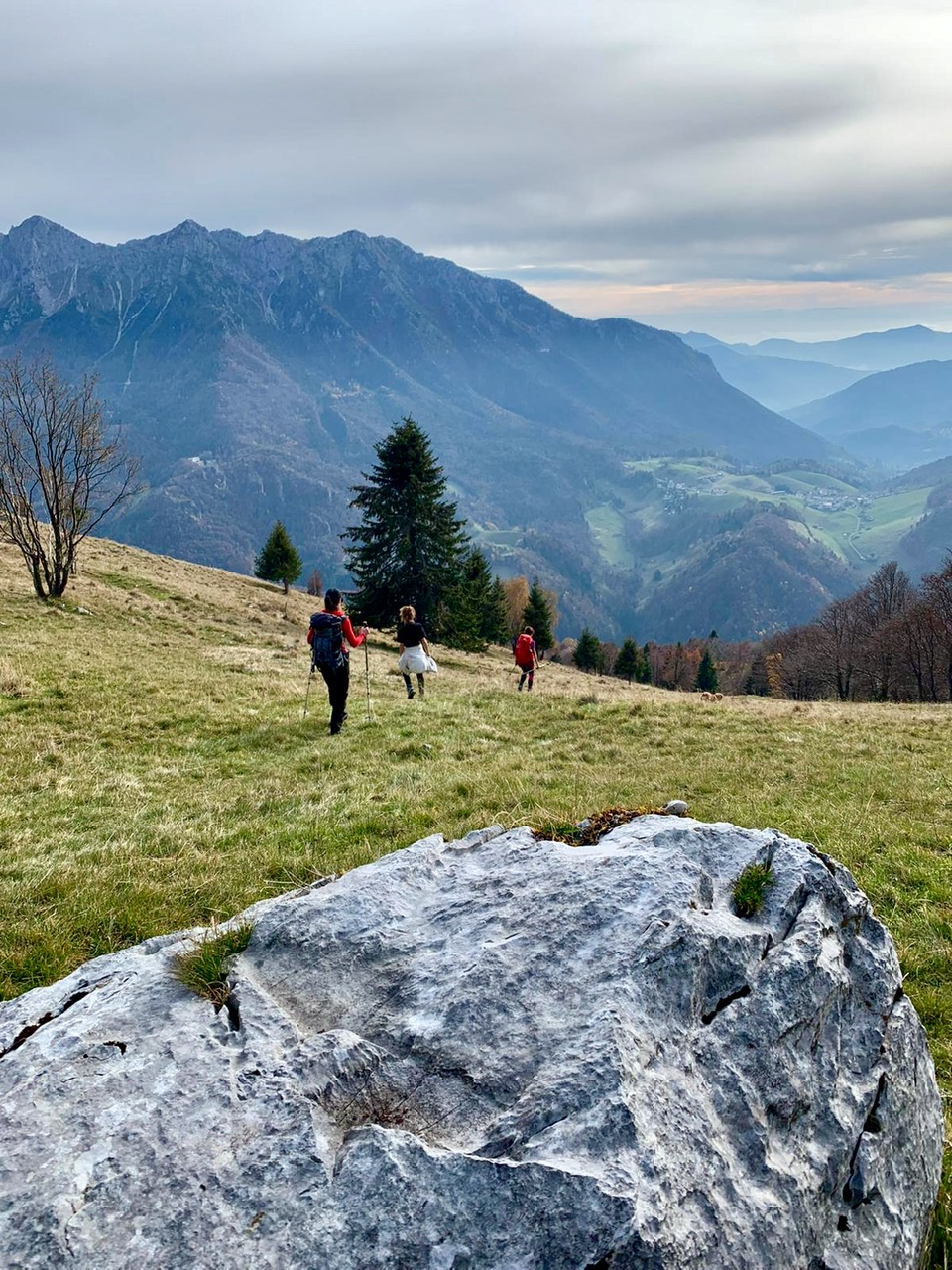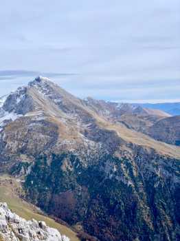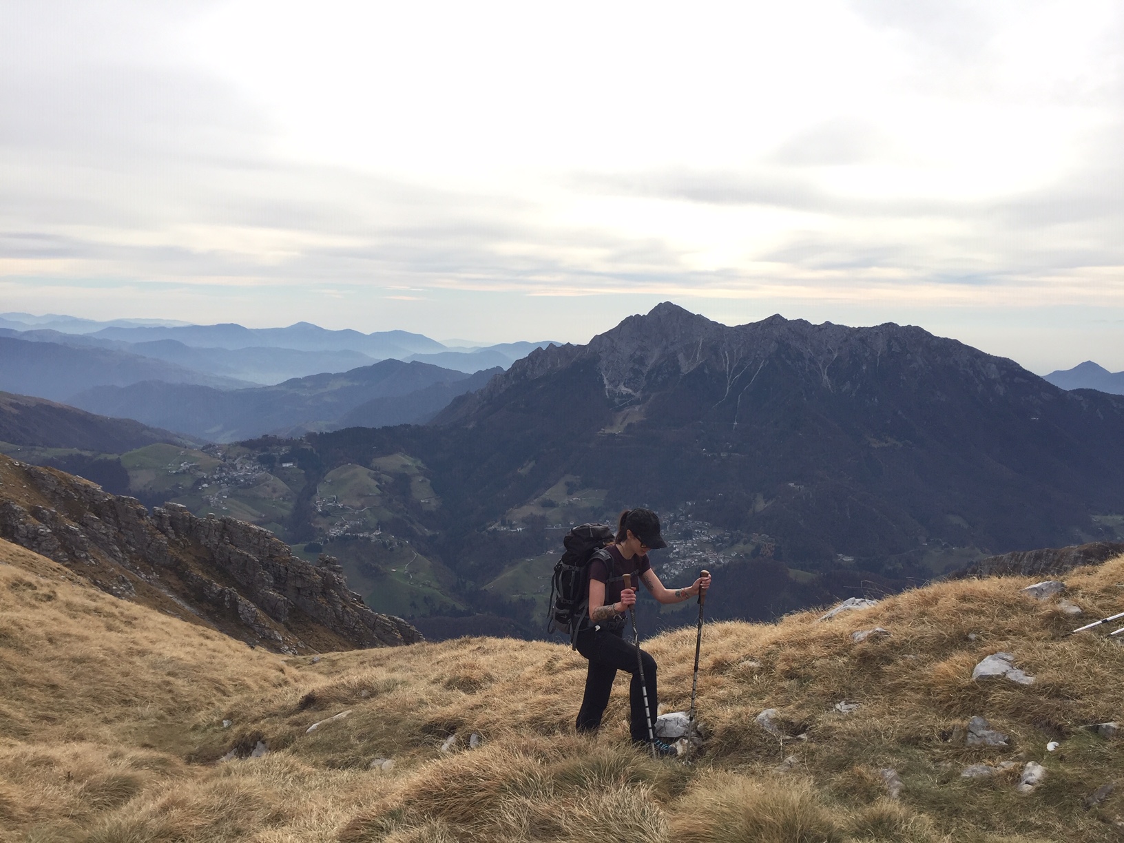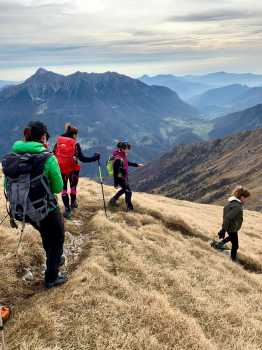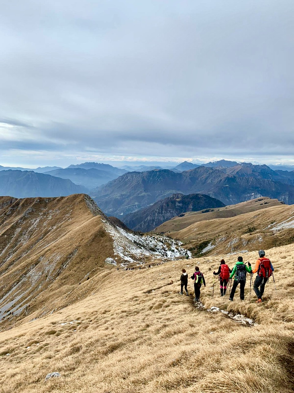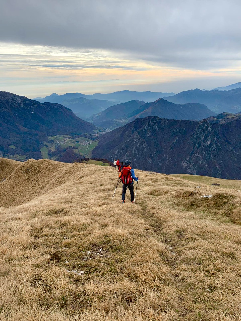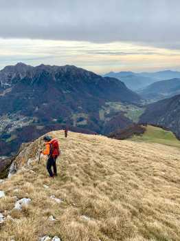 Da sempre affascinati da questa imponente cima che, a braccetto con l'Arera, separa la val Brembana dalla val Seriana, ci incamminiamo sui sentieri alle sue pendici per raggiungerne la sua maestosa vetta. Parcheggiata l'auto nella parte alta di Zorzone, prendiamo il sentiero segnalato 234 Cai che troviamo alla nostra sinistra, che con pendenza da subito marcata, ci porta sulla strada forestale principale, che seguiamo per un pezzo. Incrociamo poco più avanti il cartello in legno, seguiamo l'indicazione "sentiero diretto" a sinistra, che ci riporta sul sentiero nel fitto bosco colmo di splendidi colori autunnali. Raggiunta la Cascina Mattuida (1475 m), piccola sosta per poi riprendere il cammino sempre su stretto sentiero ormai fuori dal bosco. Intravediamo da lontano il bivacco Palazzi (MAGA)2002 m, collocato sul passo Menna, che raggiungiamo a conclusione di ripidi tratti ben tracciati. Da qui intravediamo la maestosa vetta, che raggiungiamo prendendo il sentiero sulla destra che ci porta ad attraversare la lunga cresta panoramica, decisamente roccioso con qualche punto esposto mai troppo impegnativo. La lingua di terra termina con la piccola croce in ferro che domina cima Menna, da cui godiamo del fantastico panorama a 360 gradi sulla valli, oltre che di un meritato panino. Ridiscesi dalla cresta, ci ritroviamo al bivacco, imboccando il sentiero in salita alle sue spalle che ci conduce prima alla croce MAGA e successivamente a quella di Chignol d'Aral (2068), da cui parte la ripida discesa sul pratone coi suoi spettacolari scorci su vallata e alture circostanti. Chiudiamo il nostro anello col sentiero che si immette su strada cementata che ci riporta così al bivio iniziale, ritrovandoci ancora sulla strada forestale che ci riporta al parcheggio in paese.