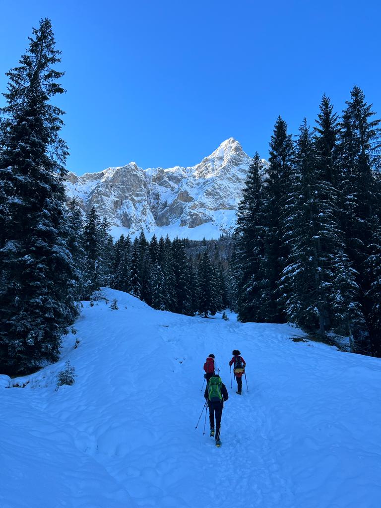 Parcheggiata l'auto al capolinea della strada poco dopo il laghetto di Valcanale, ignoriamo l'imbocco classico in direzione rifugio Alpecorte, oltrepassando invece la sbarra sulla sinistra che ci immette su una strada asfaltata, ma comunque chiusa al traffico. Superiamo le strutture ormai abbandonate dei vecchi alberghi ed ecco che dopo un paio di tornanti nel bosco ci ritroveremo in una bella radura, dalla quale avvisteremo già le cime sovrastanti, in un bellissimo scenario di candida neve. Dopo quasi un'oretta di cammino ci ritroveremo alle baite Gan Nembro, zona in cui potremo scorgere ancora meglio le cime della Corna Piana e del Monte Arera.