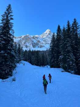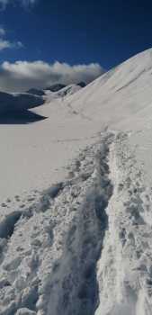 Superata la zona più alta degli ex impianti da sci, attivi dal 1972 al 1997, superiamo un breve tratto in discesa addentrandoci nel bosco, superato il quale saremo nuovamente in una radura con alcune baite, dalle quali potremo tagliare verso il rifugio Alpecorte a destra, oppure dirigerci verso passo e rifugio Branchino sulla sinistra. Optiamo per quest'ultima possibilità affrontando il ben segnalato sentiero innevato che con pendenza marcata ci porta in circa mezz'ora al rifugio e al relativo lago ghiacciato, e dopo altri dieci minuti al passo, raggiunto il quale potremo fare rientro passando stavolta dal rifugio Alpecorte dopo un buona mezz'ora. Approfittiamo della sua accogliente struttura e ospitalità per un piatto caldo, prima di imboccare la forestale che ci riporta al punto di partenza, chiudendo così un anello sicuramente sfizioso e ricco di grandiosi panorami.