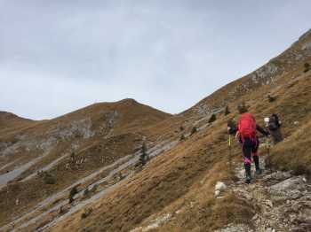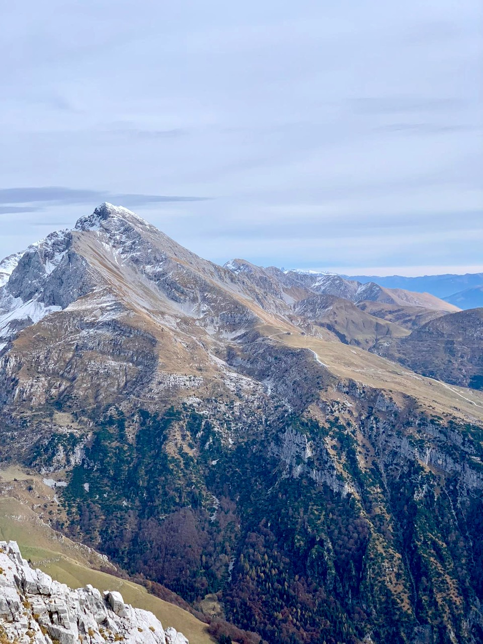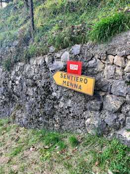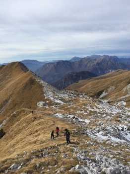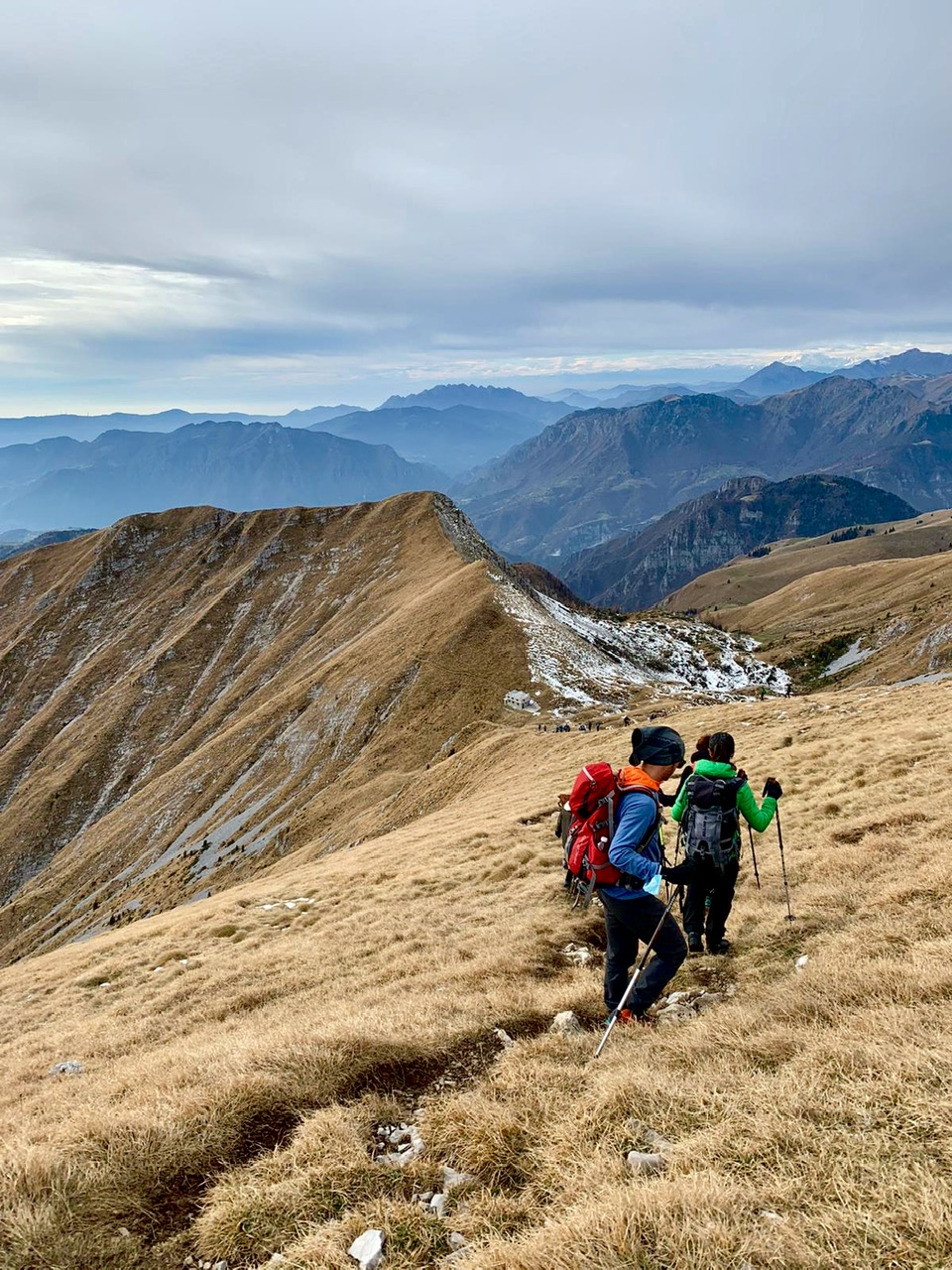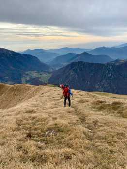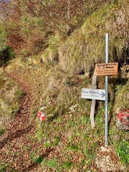 Da sempre affascinati da questa imponente cima che, a braccetto con l'Arera, separa la val Brembana dalla val Seriana, ci incamminiamo sui sentieri alle sue pendici per raggiungerne la sua maestosa vetta. Parcheggiata l'auto nella parte alta di Zorzone, prendiamo il sentiero segnalato 234 Cai che troviamo alla nostra sinistra, che con pendenza da subito marcata, ci porta sulla strada forestale principale, che seguiamo per un pezzo. Incrociamo poco più avanti il cartello in legno, seguiamo l'indicazione "sentiero diretto" a sinistra, che ci riporta sul sentiero nel fitto bosco colmo di splendidi colori autunnali. Raggiunta la Cascina Mattuida (1475 m), piccola sosta per poi riprendere il cammino sempre su stretto sentiero ormai fuori dal bosco. Intravediamo da lontano il bivacco Palazzi (MAGA)2002 m, collocato sul passo Menna, che raggiungiamo a conclusione di ripidi tratti ben tracciati. Da qui intravediamo la maestosa vetta, che raggiungiamo prendendo il sentiero sulla destra che ci porta ad attraversare la lunga cresta panoramica, decisamente roccioso con qualche punto esposto mai troppo impegnativo. La lingua di terra termina con la piccola croce in ferro che domina cima Menna, da cui godiamo del fantastico panorama a 360 gradi sulla valli, oltre che di un meritato panino. Ridiscesi dalla cresta, ci ritroviamo al bivacco, imboccando il sentiero in salita alle sue spalle che ci conduce prima alla croce MAGA e successivamente a quella di Chignol d'Aral (2068), da cui parte la ripida discesa sul pratone coi suoi spettacolari scorci su vallata e alture circostanti. Chiudiamo il nostro anello col sentiero che si immette su strada cementata che ci riporta così al bivio iniziale, ritrovandoci ancora sulla strada forestale che ci riporta al parcheggio in paese.