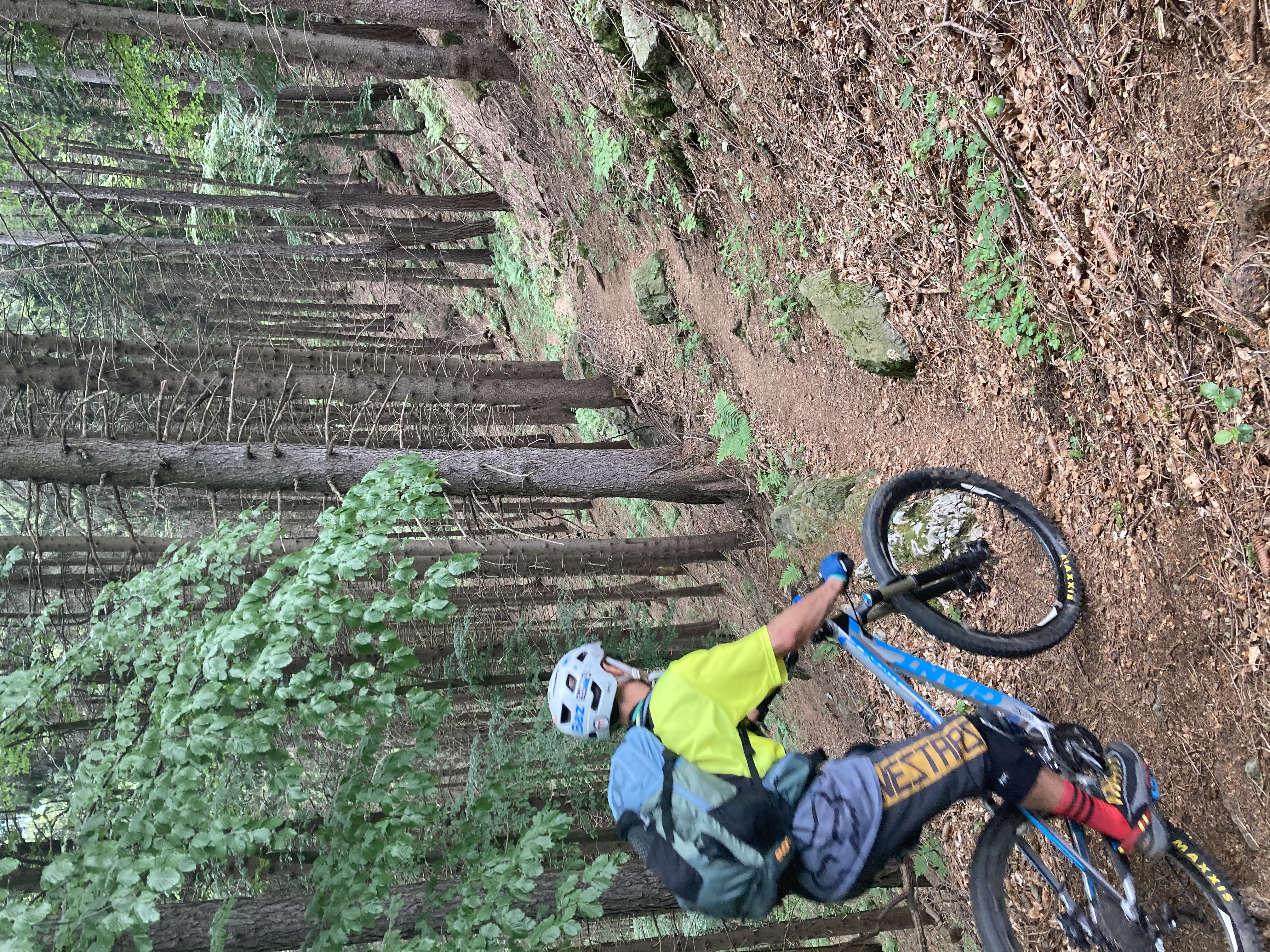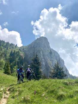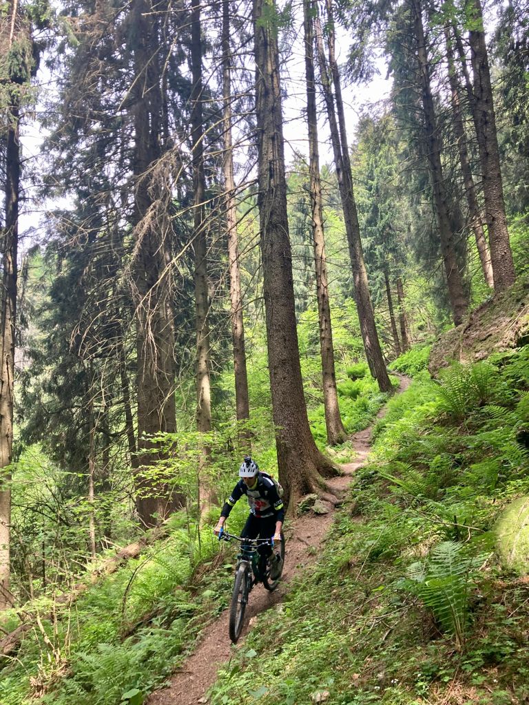 Si riparte subito all’insegna del sempre valido FBL (fà balà l’öcch) su una serpentina di vivaci tornantini che portano a Malga Palmarusso. Da qui tratto giù lungo scoscesi pratoni che fanno correre le nostre bici in scenari stupendi. Da Casentiga ecco che parte l’attesissimo sentiero dell’Uccellatore, novità di stagione che in quanto a scenari e divertimento ci fa letteralmente sognare. Ci ritroviamo in un’abetaia da fiaba dove tutto è perfetto. Un favoloso sentiero flow come mai visto prima, degno di un documentario di David Attenborough. Provare per credere. Che spettacolo!