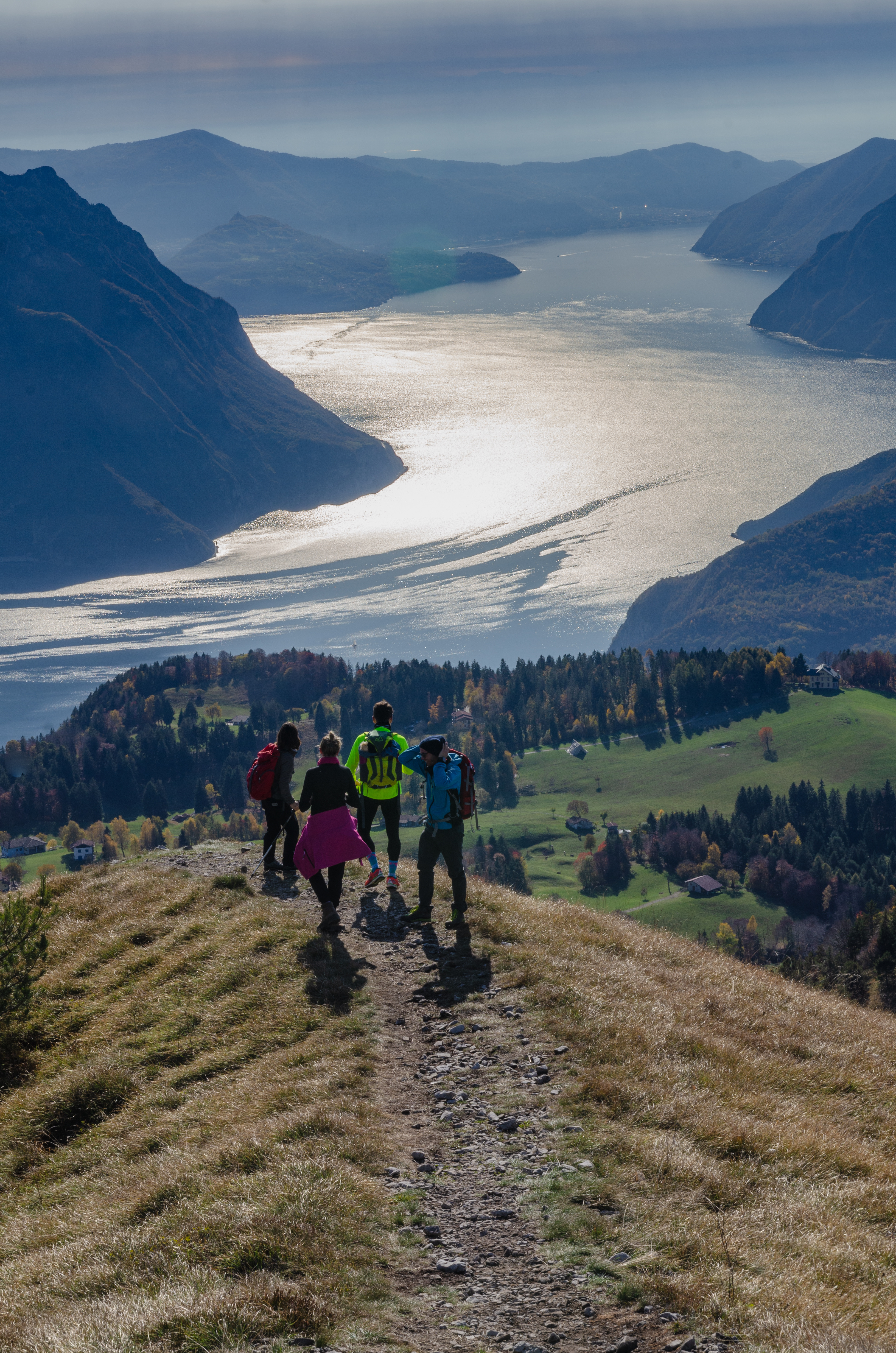 Il monte Colombina è uno di questi, cima di media altezza che domina la sponda nord-occidentale del lago d'Iseo, che con i suoi sentieri panoramici alla portata di tutti sa regalare scenari di vera bellezza. Il nostro giro ad anello parte da Bossico, in località Pila, dove imbocchiamo la strada forestale alla nostra destra, attraversando un chiosco area picnic fino ad arrivare a un bivio in cui svoltiamo a sinistra, seguendo i cartelli direzione Monte Colombina. La strada forestale prosegue immersa nel bosco con pendenze prima dolci, poi via via più marcate fino a condurci al Forcellino di Bossico. Qui svoltiamo a sinistra imboccando il sentiero a tratti ripido che ci conduce fino ai piedi del Colombina. Breve tratto di rampa che ci eleva fino ai 1458 m della vetta, dalla quale godiamo di un magnifico panorama sul Sebino, che ci fa sentire infinitamente piccoli dinnanzi a tanta bellezza. Breve sosta pranzo panoramica per poi riprendere il cammino lungo la cresta fino alla sommità del monte, affrontando il bel sentiero nel bosco in discesa che ci porta in località San Fermo, dove troviamo l'agriturismo La Selva immerso tra caratteristici pascoli. Proseguendo oltre seguiamo il sentiero 554 che in leggera discesa torna nel bosco. Scegliamo di deviare al primo bivio a sinistra, che su ripide rampe cementate ci fa perdere di quota riportandoci a ridosso della parte alta del paese fino a tornare in località Pila, nostro punto di arrivo.