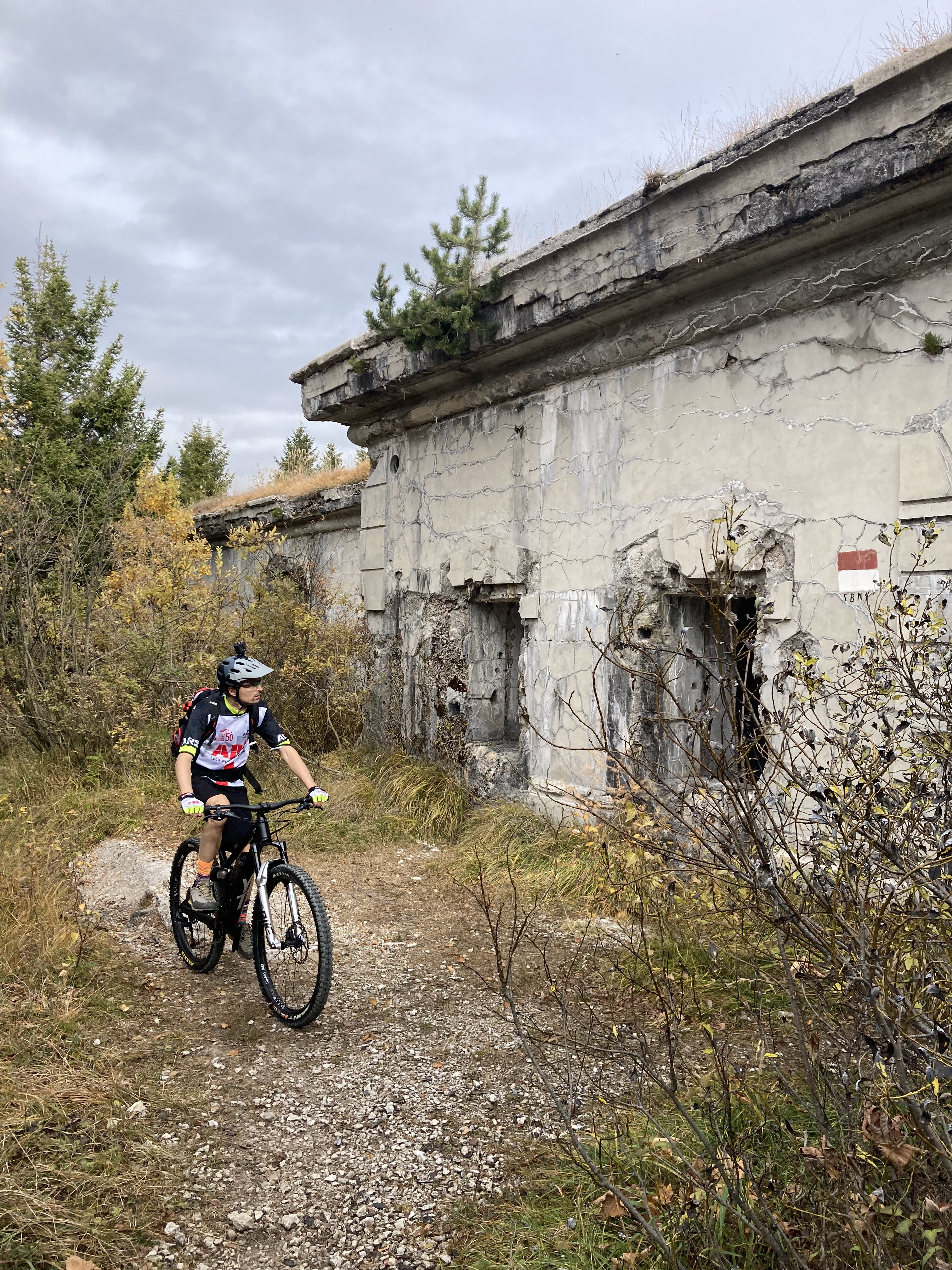 Poco dopo, in corrispondenza del rifugio Rosa di Baremone, termina la strada asfaltata. Dopo una breve pausa, proseguiamo seguendo le indicazioni per forte Cima Ora sulla destra. Deviazione obbligata quella al forte, la cui sommità si può raggiungere dopo un breve tratto di sentiero pedalabile. Attenzione a non imboccare la direttissima in discesa dal forte, il sentiero diventa una breve via ferrata.
