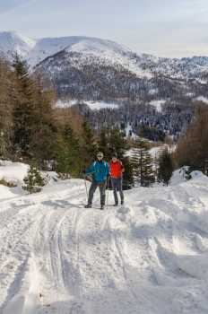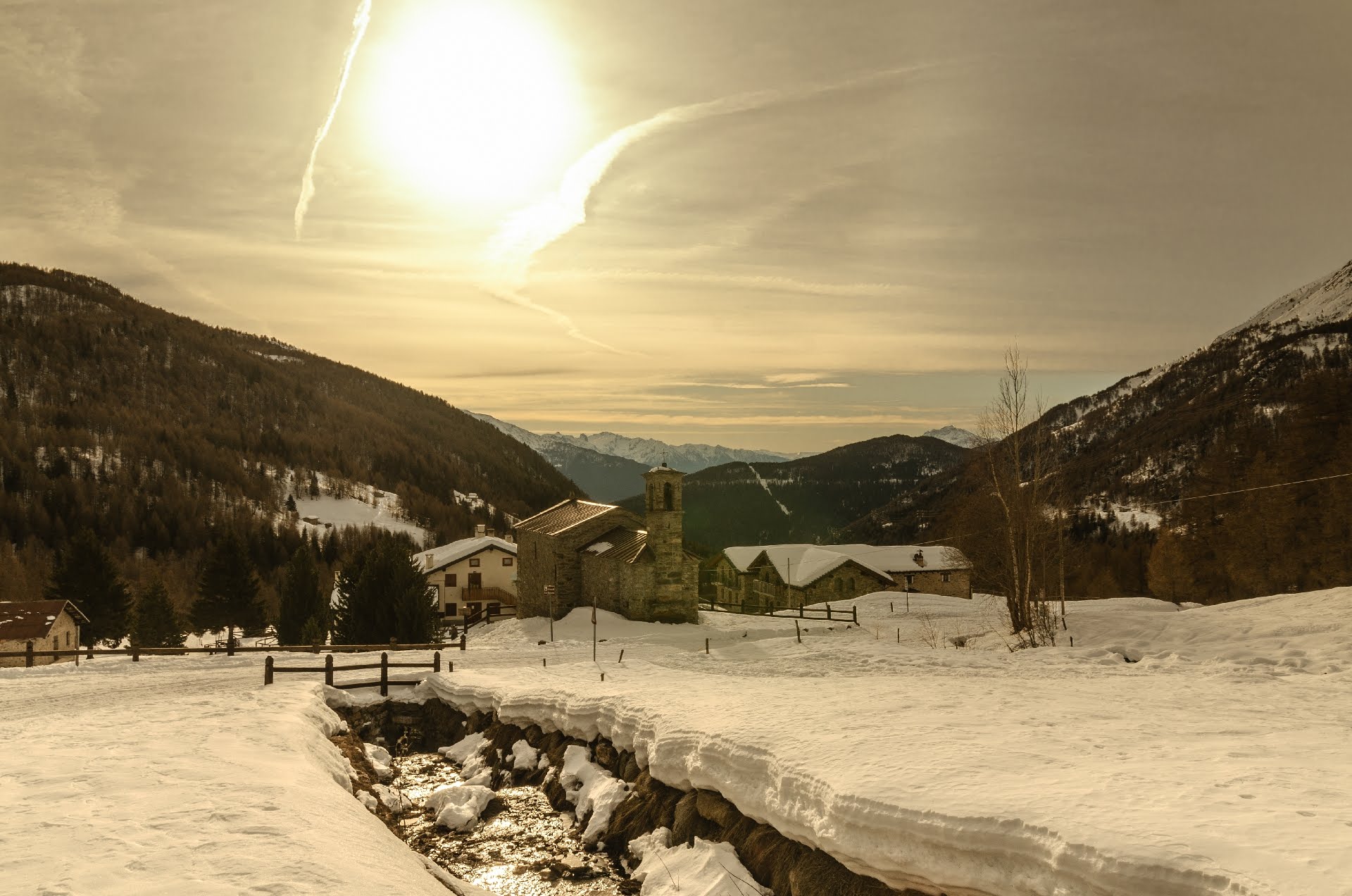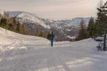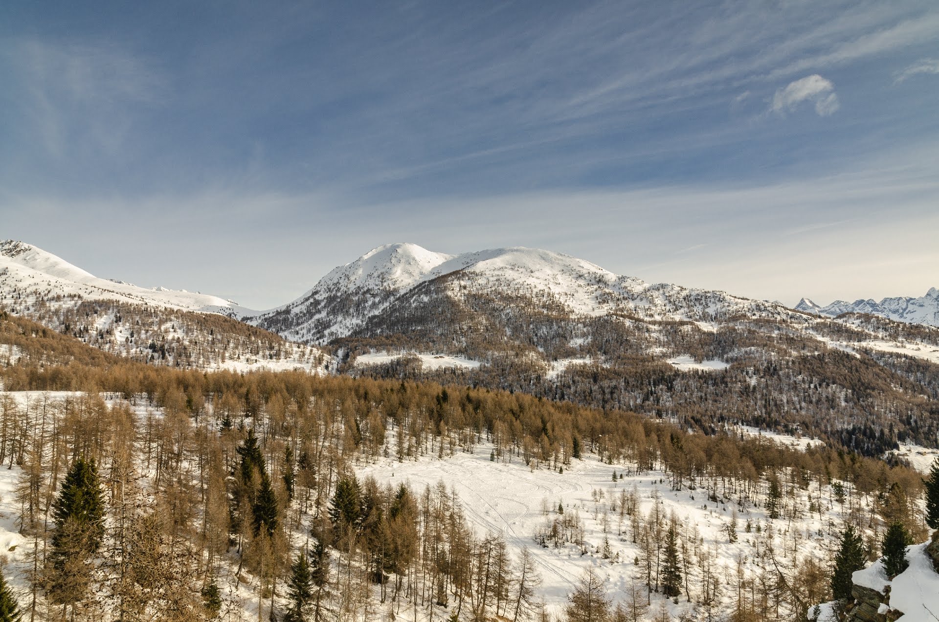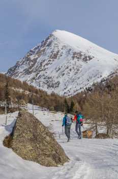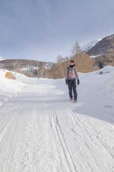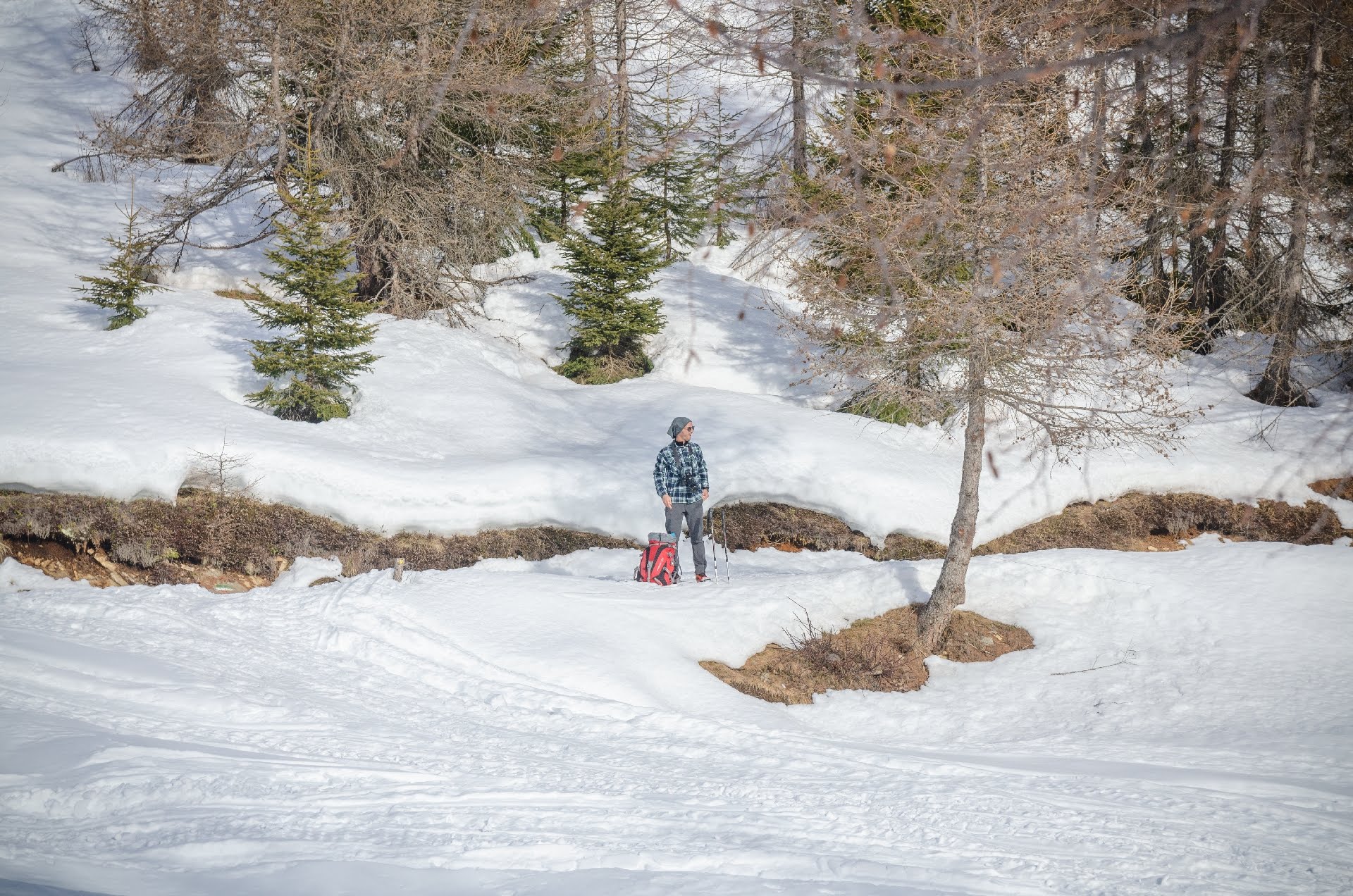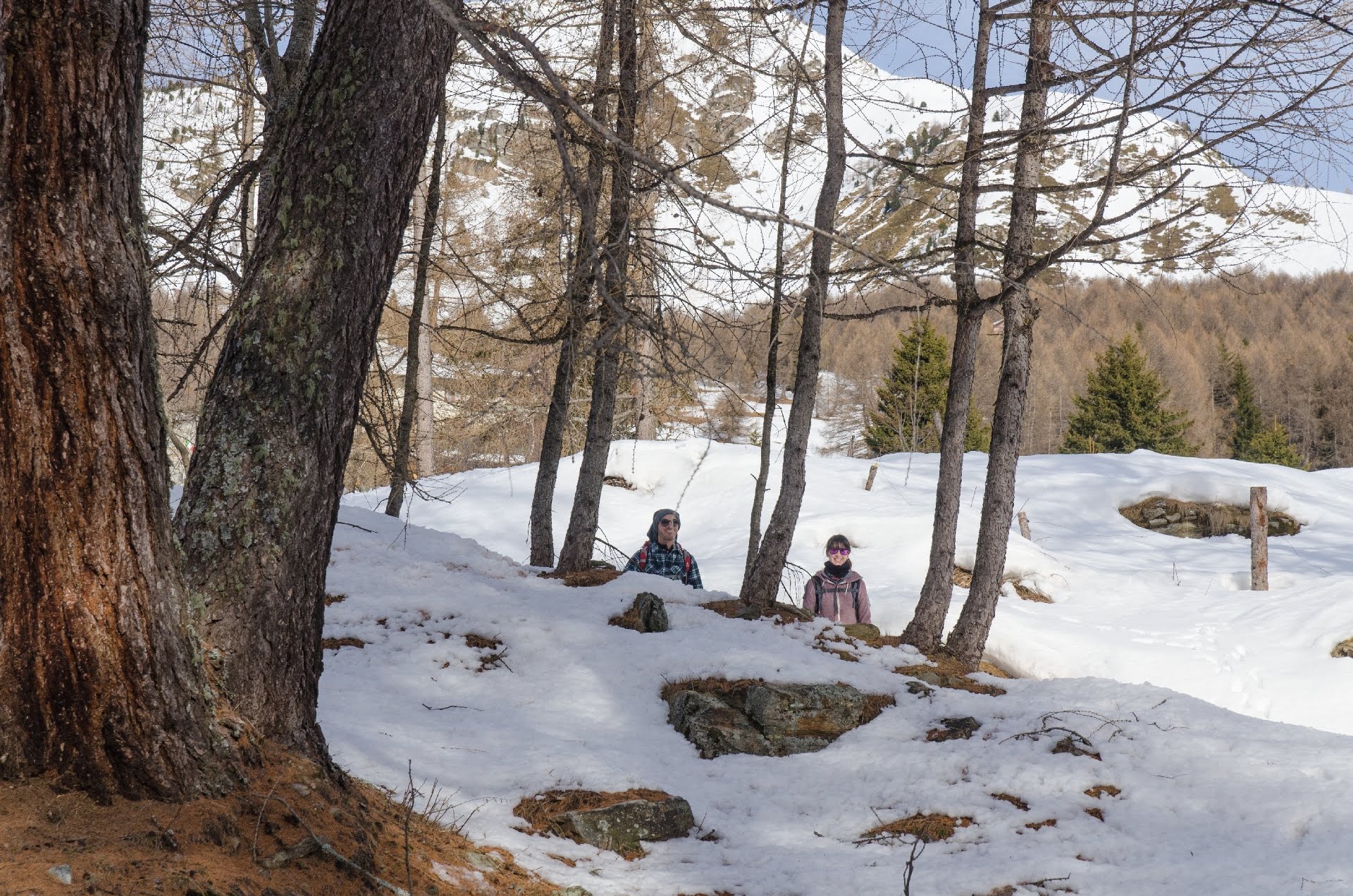 Partiti dalla vecchia mulattiera dopo l’abitato di Monno (BS), risaliamo lungo la vallata, fino a immetterci sulla strada provinciale 81 innevata, che risaliamo fino a giungere al Passo del Mortirolo (1882m), scenario di mille epiche battaglie ciclistiche.