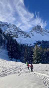 Parcheggiata l'auto al capolinea della strada poco dopo il laghetto di Valcanale, ignoriamo l'imbocco classico in direzione rifugio Alpecorte, oltrepassando invece la sbarra sulla sinistra che ci immette su una strada asfaltata, ma comunque chiusa al traffico. Superiamo le strutture ormai abbandonate dei vecchi alberghi ed ecco che dopo un paio di tornanti nel bosco ci ritroveremo in una bella radura, dalla quale avvisteremo già le cime sovrastanti, in un bellissimo scenario di candida neve. Dopo quasi un'oretta di cammino ci ritroveremo alle baite Gan Nembro, zona in cui potremo scorgere ancora meglio le cime della Corna Piana e del Monte Arera.