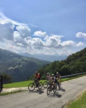Tornati in sella ai nostri mezzi imbocchiamo la mulattiera denominata via dei Molini, che tra fitti boschi e greggi di belanti pecore, ci porta a valle, esattamente nel borgo di Riso, dal quale imbocchiamo la tranquilla ciclovia Valle del Riso lungo il frizzante torrente, fino a ricongiungerci con quella della val Seriana, che in pochi minuti ci riporta al nostro punto di partenza.