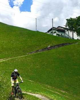 Proseguiamo oltre, pedalando su una salita impegnativa, ma dalle pendenze sempre dolci e costanti, fino a raggiungere la tranquilla frazione di Bondo, che con le sue case immerse tra i pascoli mitiga la nostra fatica.
